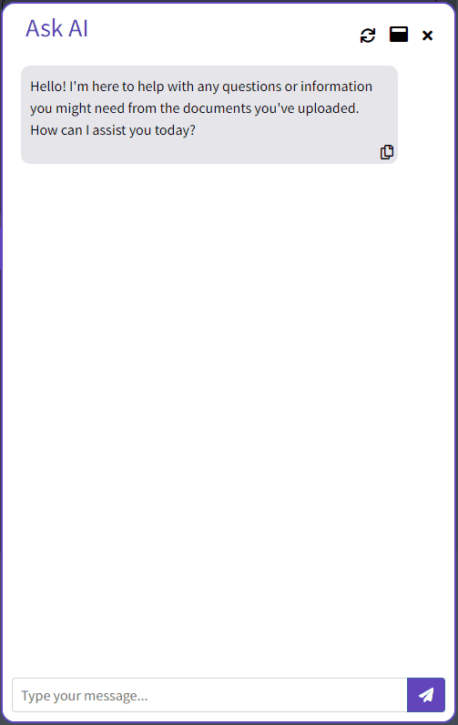 Your documents including policy files, procedures or quick reference guides are fine tuning the large language model, allowing users to interact in real time via Ask AI for uniquely generated content.